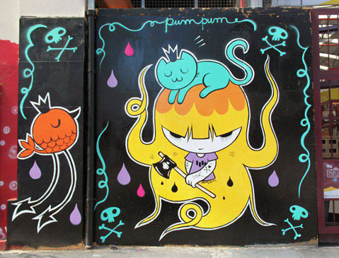 like Black Flag. A graphic designer by trade, Pum Pum creates murals and